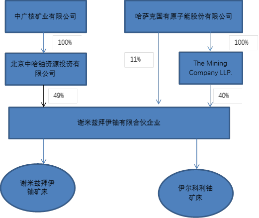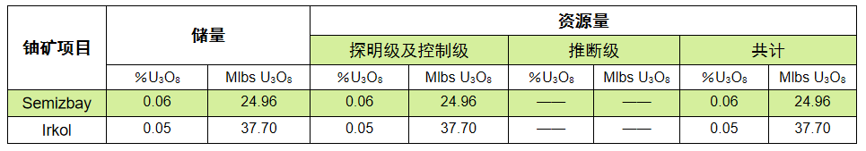2015年中廣核礦業(yè)完成哈薩克斯坦謝米茲拜伊鈾有限合伙企業(yè)49%股權(quán)的收購,并獲得旗下兩座在運(yùn)營鈾礦山(謝米茲拜伊鈾礦床和伊爾科利鈾礦床)49%的天然鈾產(chǎn)品包銷權(quán),成為一家主業(yè)清晰的鈾資源開發(fā)和貿(mào)易公司。 謝米茲拜伊有限合伙企業(yè)的架構(gòu) 謝米茲拜伊鈾礦床 謝米茲拜伊鈾礦井場 謝米茲拜伊鈾礦現(xiàn)場鉆探 謝米茲拜伊鈾礦產(chǎn)品液加工車間 伊爾科利鈾礦床 伊爾科利鈾礦辦公樓 伊爾科利鈾礦產(chǎn)品液加工車間 伊爾科利井場 資源量及儲(chǔ)量(2021.12.31)