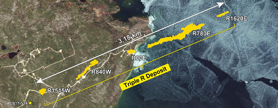 PLS項(xiàng)目目前已發(fā)現(xiàn)的礦體呈東西走向,從西到東依次為R1515W,R840W, R00E,R780E 和R1620E,長(zhǎng)度約3.17 公里,組成加拿大薩斯喀徹溫省已發(fā)現(xiàn)的最長(zhǎng)的高品位鈾礦成礦帶,亦是全球最大的待開發(fā)高品位鈾礦項(xiàng)目之一。當(dāng)前勘探結(jié)果表明,PLS項(xiàng)目未來(lái)仍具備較高的資源增長(zhǎng)潛力前景。